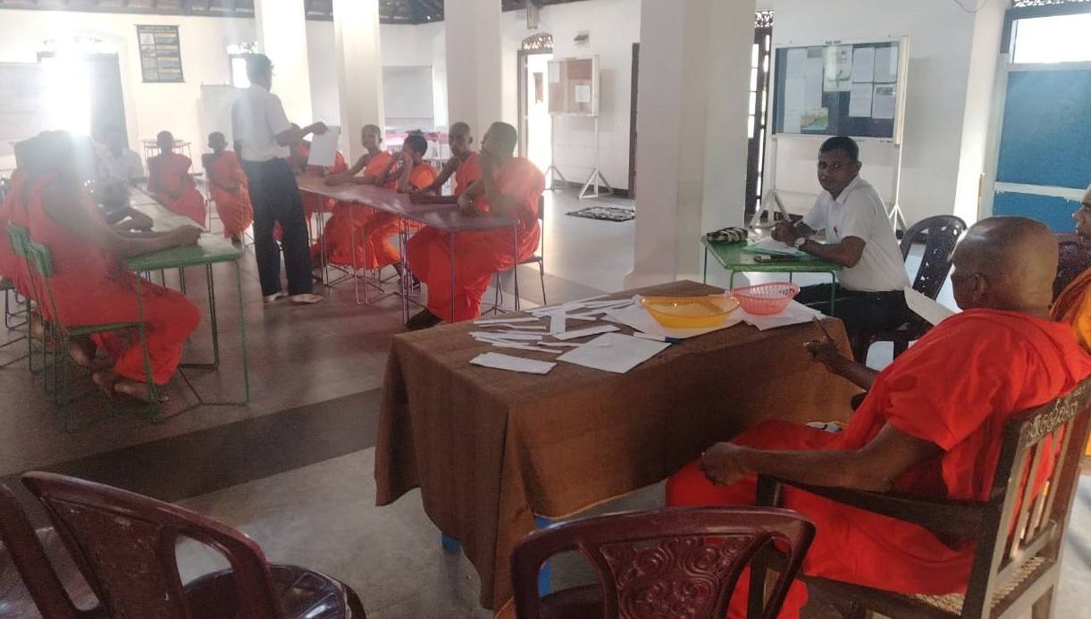 ![]() | ![]() පළමුව සිසුන් පිරිස A හා B ලෙස කණ්ඩායම් කරගන්නා ලද්දේ සිසුන්ට පෙරහුරු පරීක්ෂණයක් තබා වැඩිම ලකුණු ගන්නා | ![]() පරිවේණාධිපති හිමි,ස.පරිවේණාධිපති හිමි සමග අනෙකුත් ගුරුවරුන් සහය වෙමින්. ඉංග්රීසි ගුරුහිමියන් ප්රශ්න ගොඩවල් දෙකකට වෙන් කරමින්. A පිළට ලබාදුන් ප්රශ්න පත්රය B පිළට ලබාදුන් ප්රශ්න පත්රය | ![]() තරඟය පැවැත්වෙන ආකාරය විස්තර කරමින්. ගණිත ගුරුවරයා දිනයේ අරමුණ පැහැදිලි කර ඒම දිනයේ වැඩසටහන පැවැත්වෙන ආකාරයද විස්තර කළේය. | page-4 | |||||||||