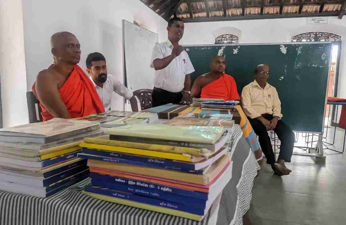 | මෙහිදී ජී.ලලිත් මංජුල ගුරුතුමා විශේෂ කතාවක් කරමින් පැවසූවේ, මෙම වර්ෂයේදී විශ්රාම යාමට නියමිතව ඇති මැලෑගොඩ කල්ය්යානසිරි නාහිමියන් හා ගණිත ගුරු ටී.එන්. ද සිල්වා ජයවික්රම ගුරු භවතුන් අපට ඉතා සමීපව සිටි අයවලුන් බැවින් වෙන්ව යාම ඉතා කණගාටුදායක වන බවත්, ඉදිරියේදී පැමිණෙන්නවුන් කෙසේ වේදැයි සිතා ගත නොහැකි වන බවත්ය. | ![]() නව වසරට පොත් බෙදා දීම. | සහකාර පරිවේණාධිපති හිමියන්ගේ දේශනය | |||||||||||